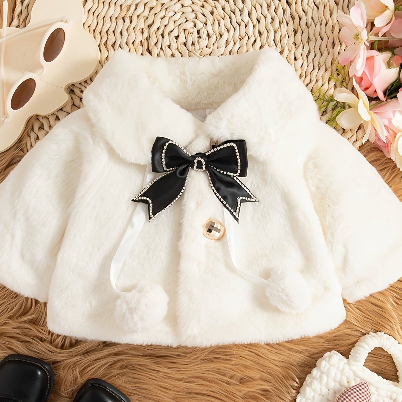 Asegúrate de que tu bebé esté abrigada y luzca elegante en cualquier celebración. Este hermoso abrigo, hecho de piel afelpada muy suave y esponjosa, es la prenda perfecta para vestir sobre vestidos de fiesta, bautizos o bodas en invierno.