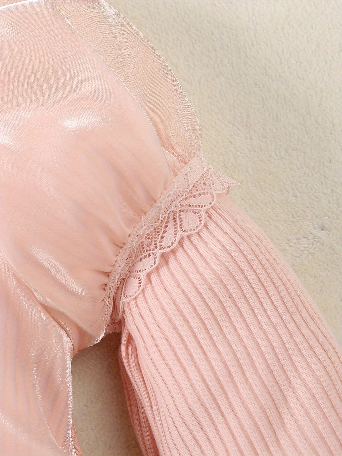Mangas acanaladas con encaje delicado y detalles fruncidos.