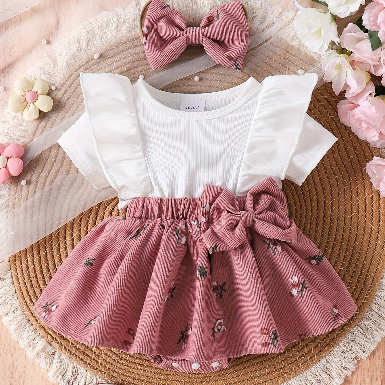 Un conjunto esencial y cómodo para tu bebé: este body con volantes en hombros se combina con una falda acampanada de estampado floral y viene con diadema a juego. Confeccionado en 100 % algodón, ofrece suavidad y transpirabilidad para la piel delicada de tu peque. Ideal para el día a día y paseos, su corte regular y tejido resistente lo hacen imprescindible en cualquier armario de 0–3 años.