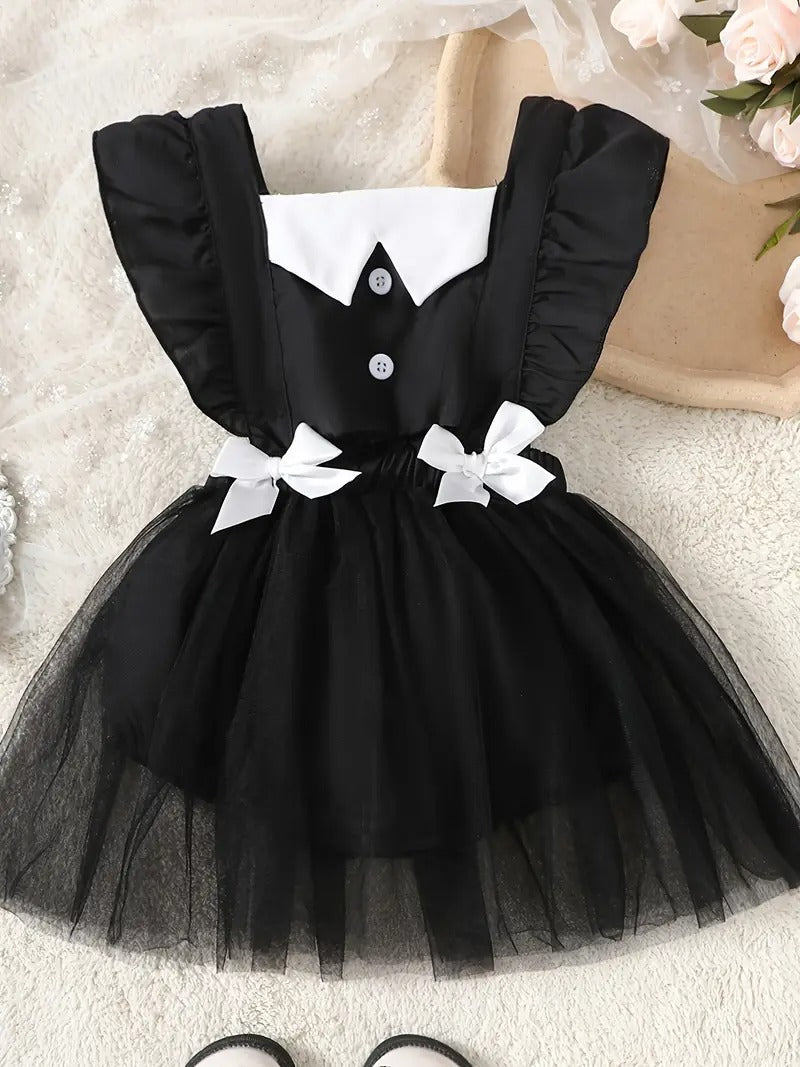 Detalles adicionales: Un moño de satén, con diseño de lunares a juego, que se puede atar en la cintura.