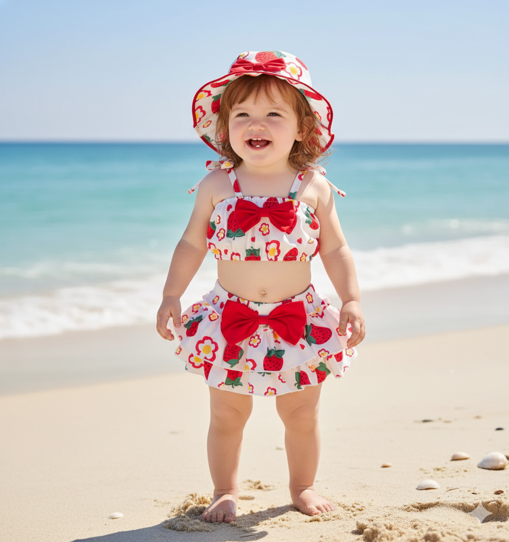 - 3 Piezas, gorro, top y bombacha.