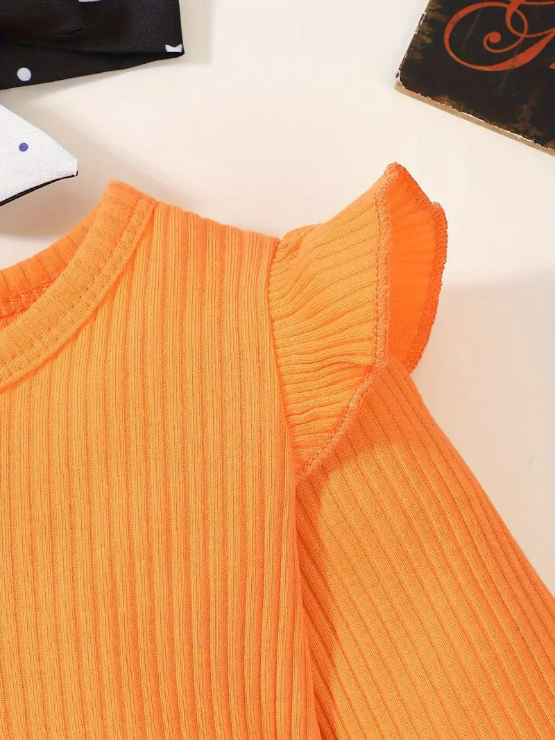 ¡Viste a tu bebé para la temporada más divertida del año con este encantador conjunto temático de Halloween! Es ideal para pedir dulces, ir a fiestas o simplemente lucir festiva y cómoda durante todo el mes de octubre.