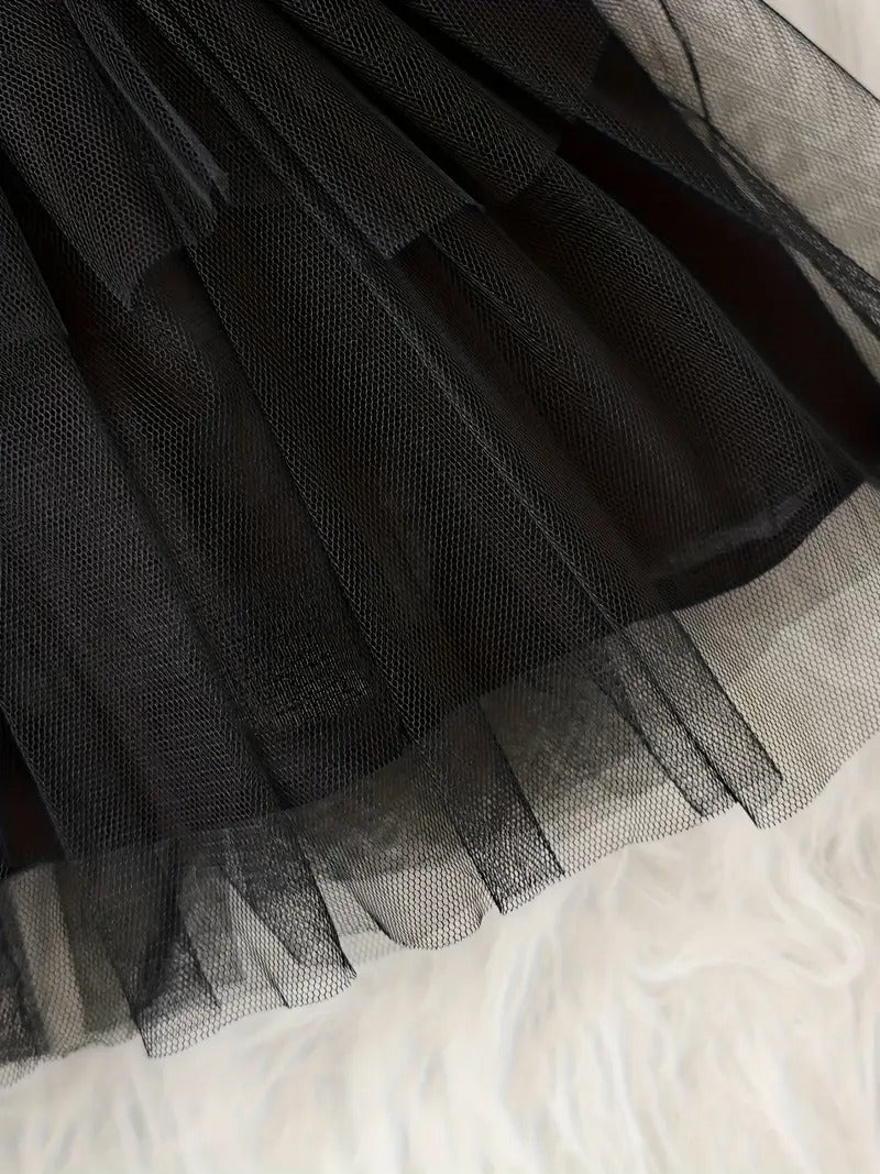 Estilo: El contraste de rojo, negro y blanco es llamativo, y la falda de tul le da un aire festivo.