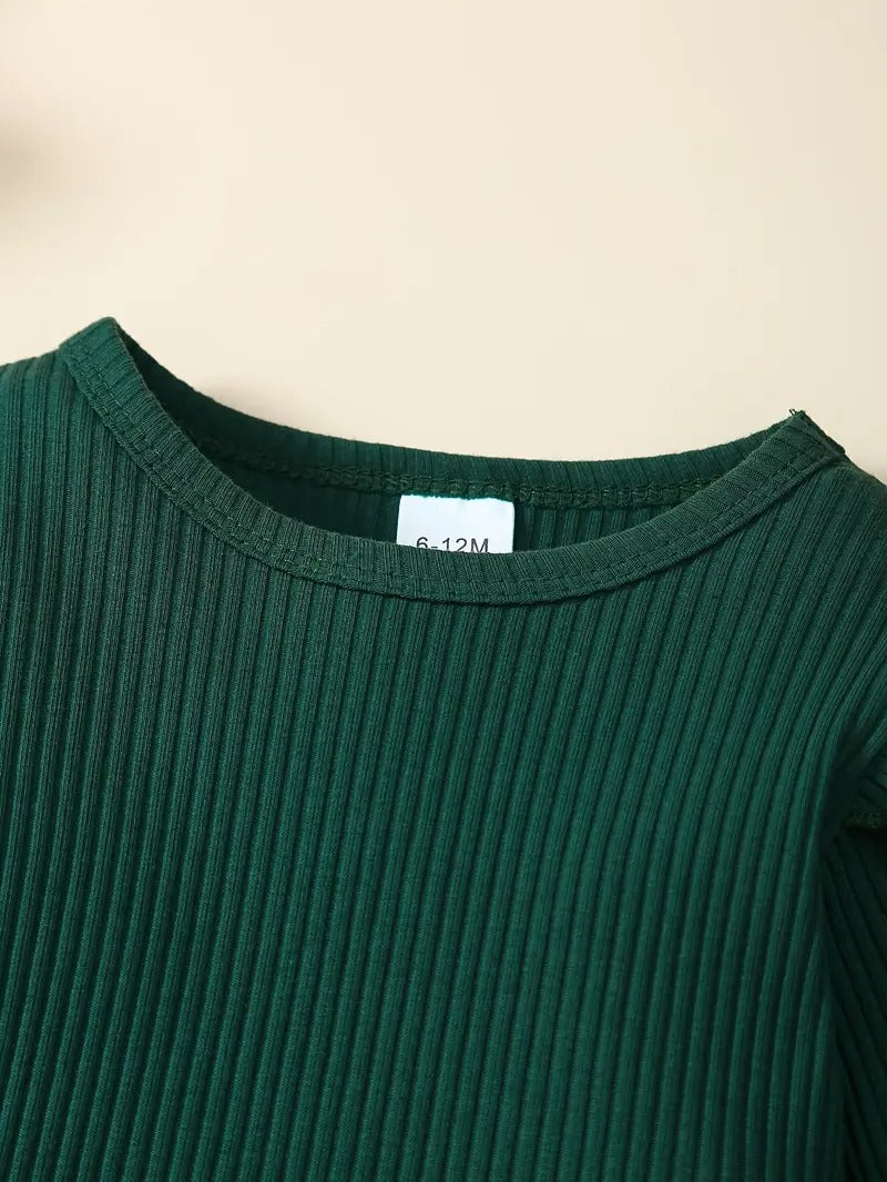 Body Manga Larga : El top interior es de tela acanalada (con textura de rayas verticales) en un hermoso color verde botella a juego, garantizando calidez.