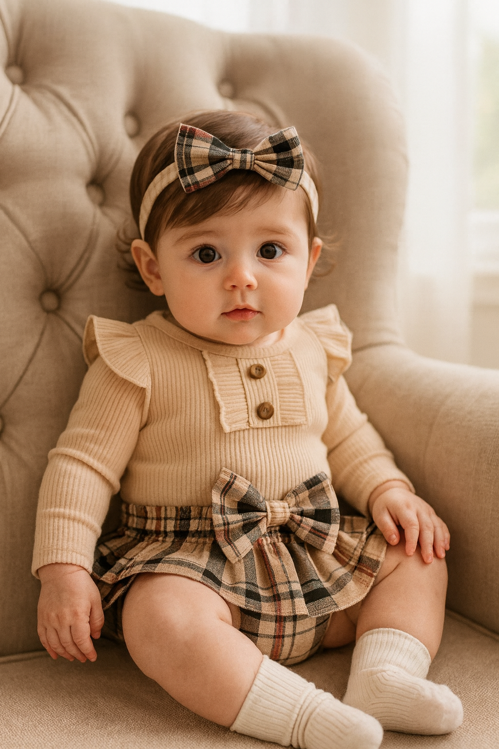 Ideal para paseos de otoño, sesiones de fotos familiares o simplemente para darle un aire chic y cómodo al día a día. ¡Un outfit que combina estilo y confort!
