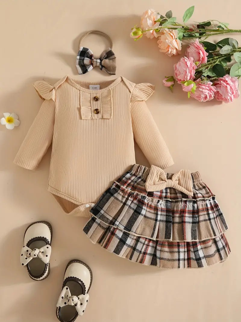 Envuelve a tu bebé en ternura otoñal con este precioso set de tres piezas: