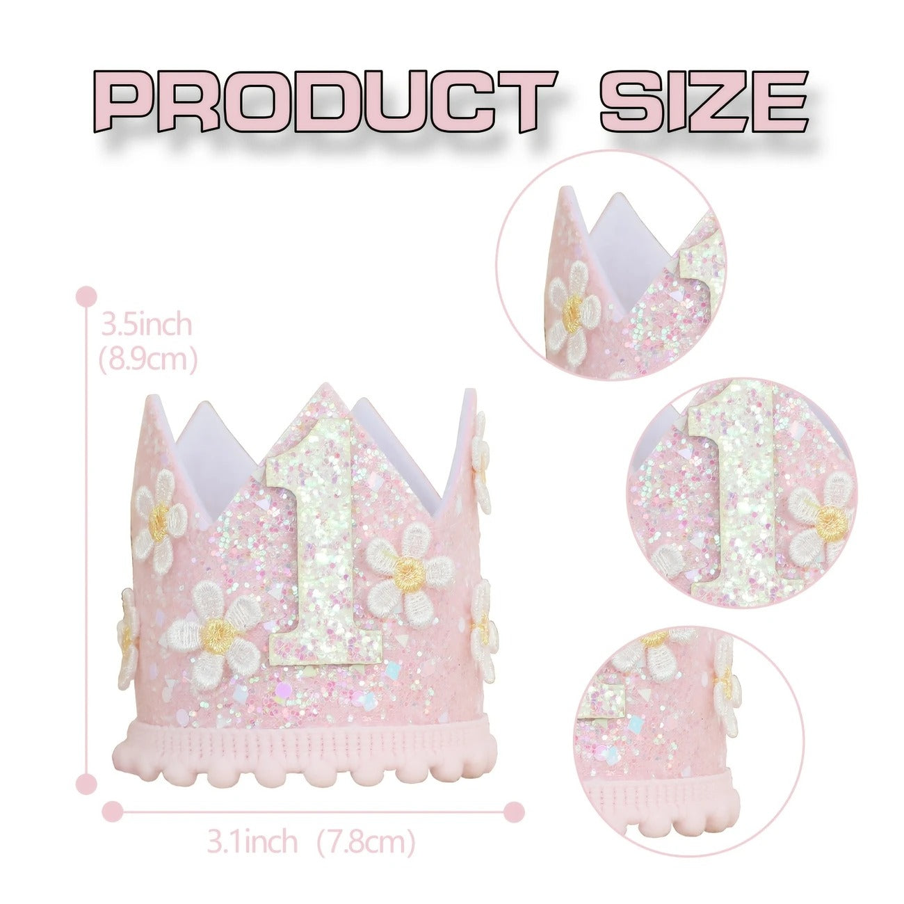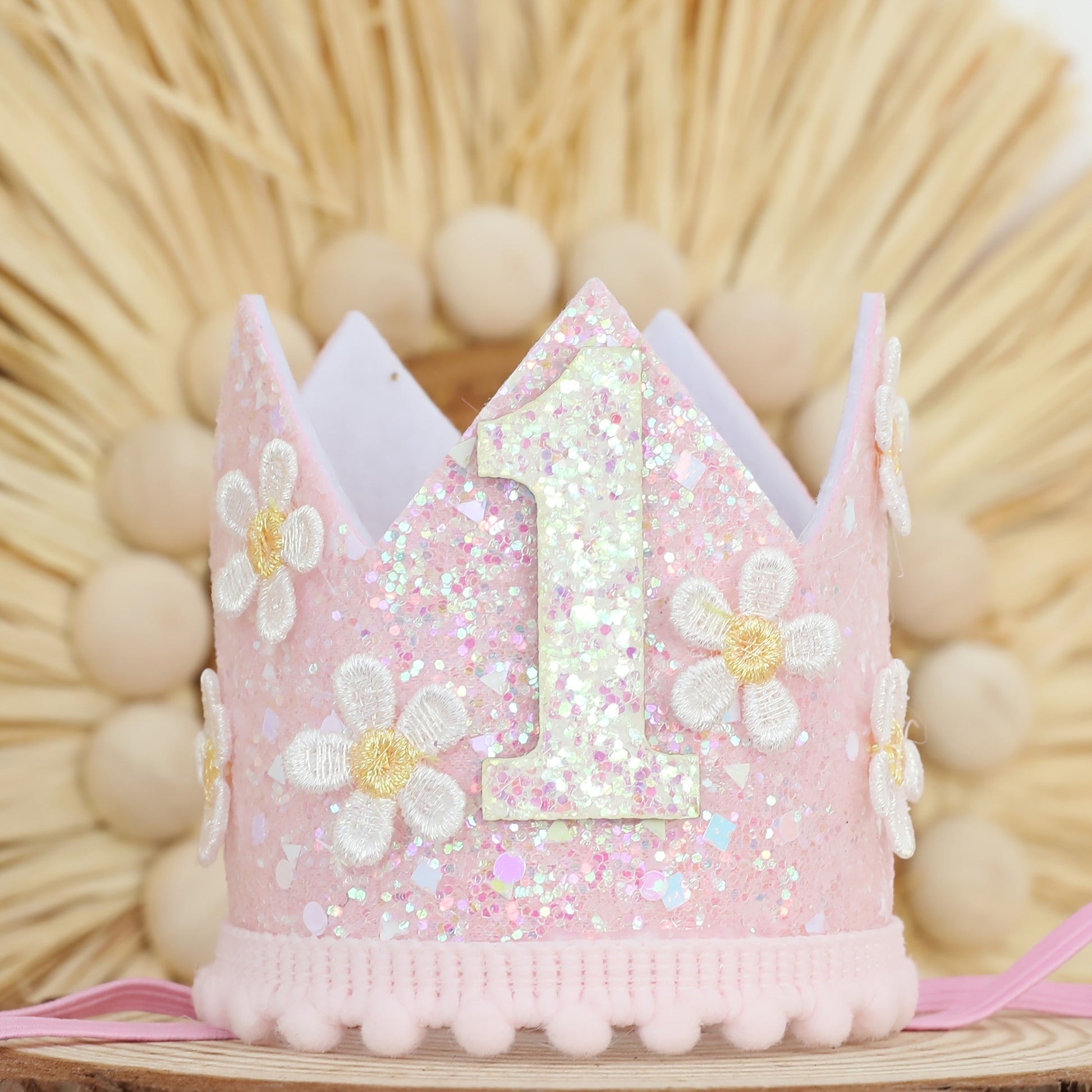 Corona de Cumpleaños para Niña con Flores y Purpurina