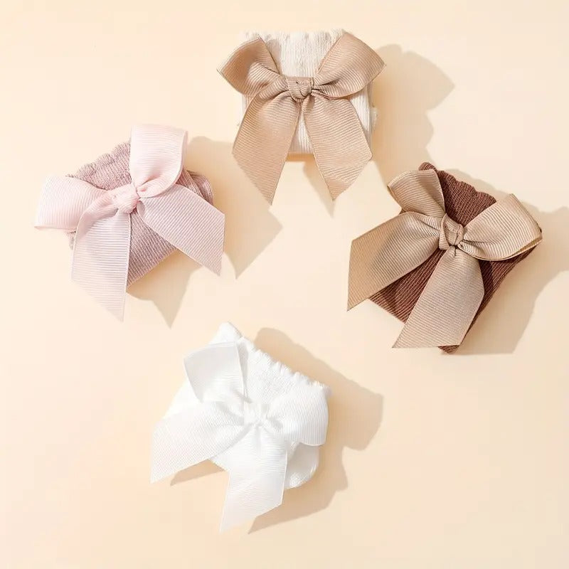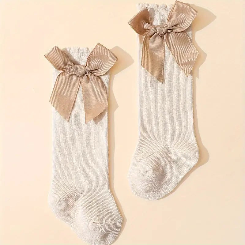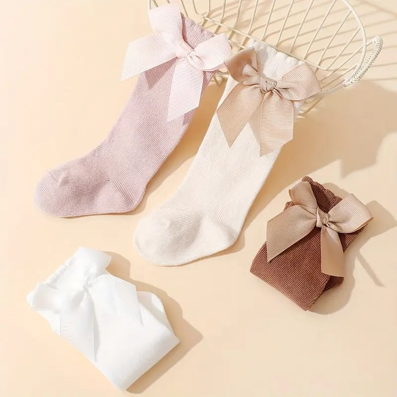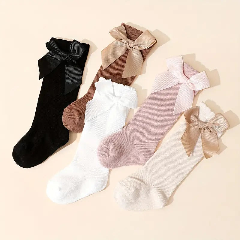 Agrega un toque chic y femenino al look de tu bebé con nuestras medias decoradas con lazos satinados. Diseñadas con materiales suaves y elásticos, son ideales para mantener sus piernas abrigadas con elegancia, ya sea para el día a día o para eventos especiales.