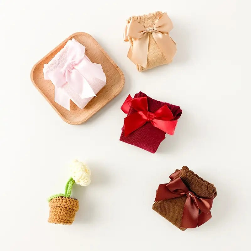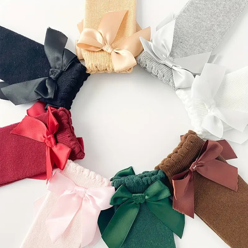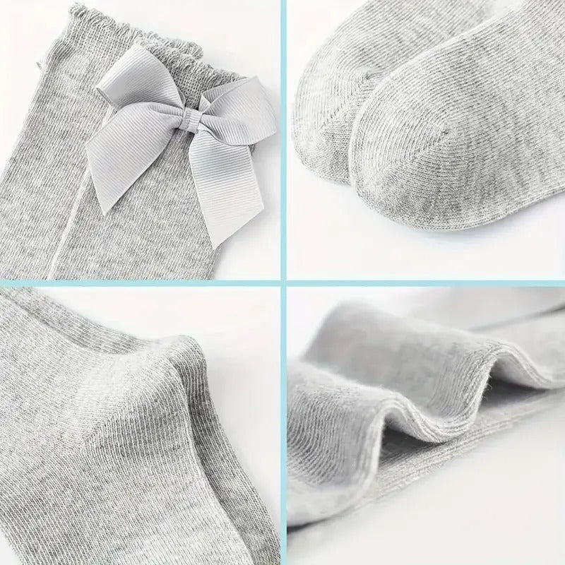 Agrega dulzura y estilo a cada look con este encantador set de medias altas con moño satinado para bebé. Diseñadas con amor y pensadas para brindar comodidad todo el día, estas medias son el complemento perfecto para cualquier conjunto.