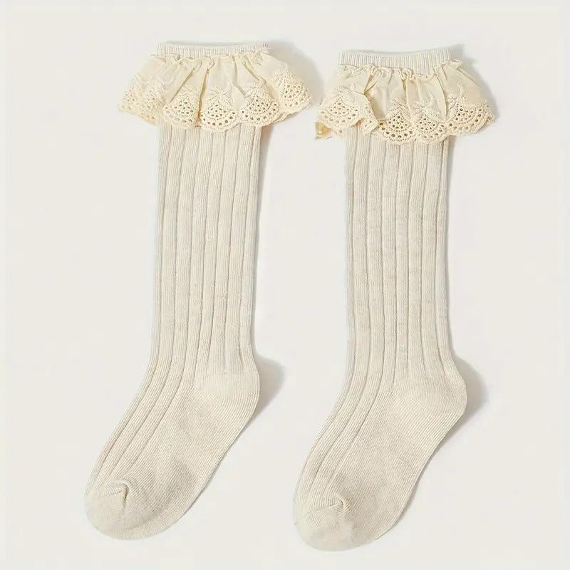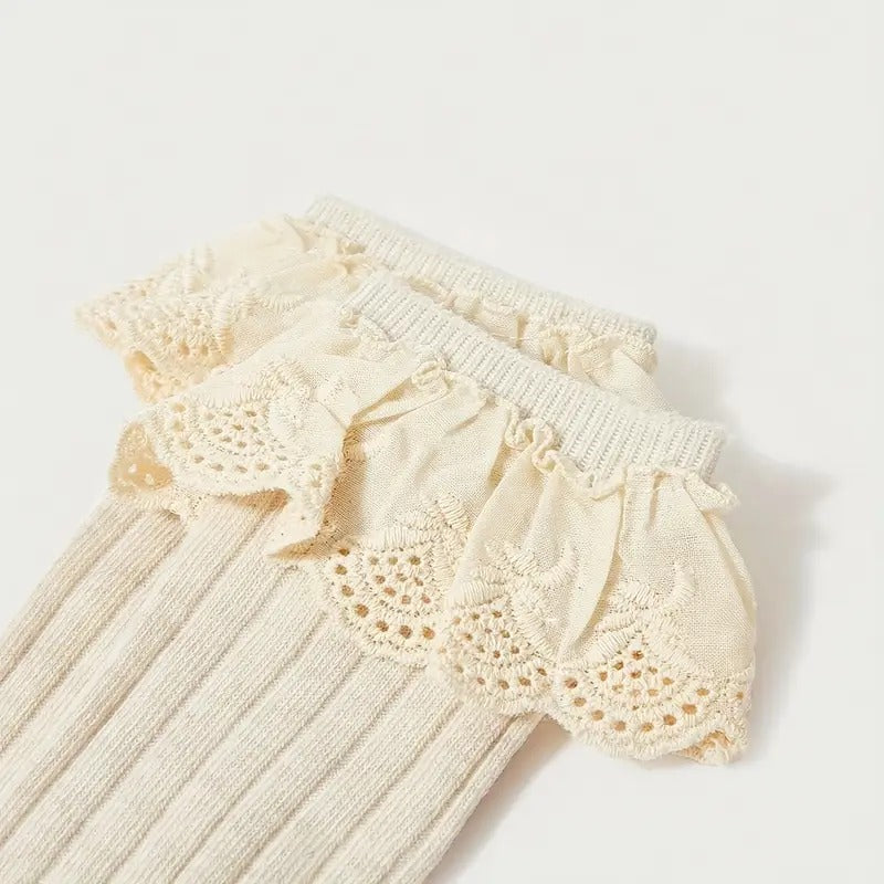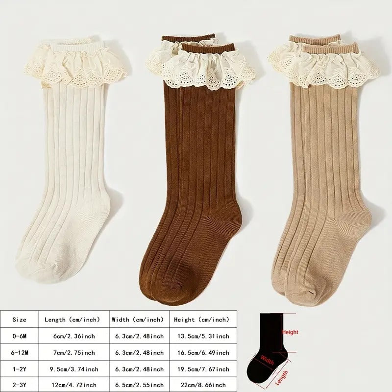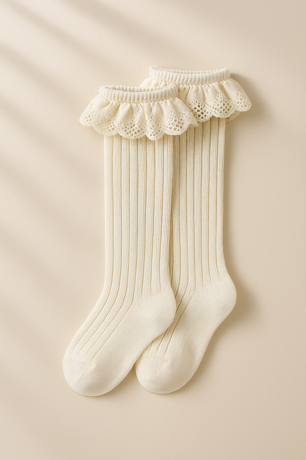 Agrega un toque clásico y encantador al look de tu bebé con nuestras medias altas de punto con detalle de encaje floral. Diseñadas especialmente para pequeñas de RN a 24 meses, estas medias no solo abrigan con suavidad sino que también realzan cualquier outfit con su estilo delicado y vintage.