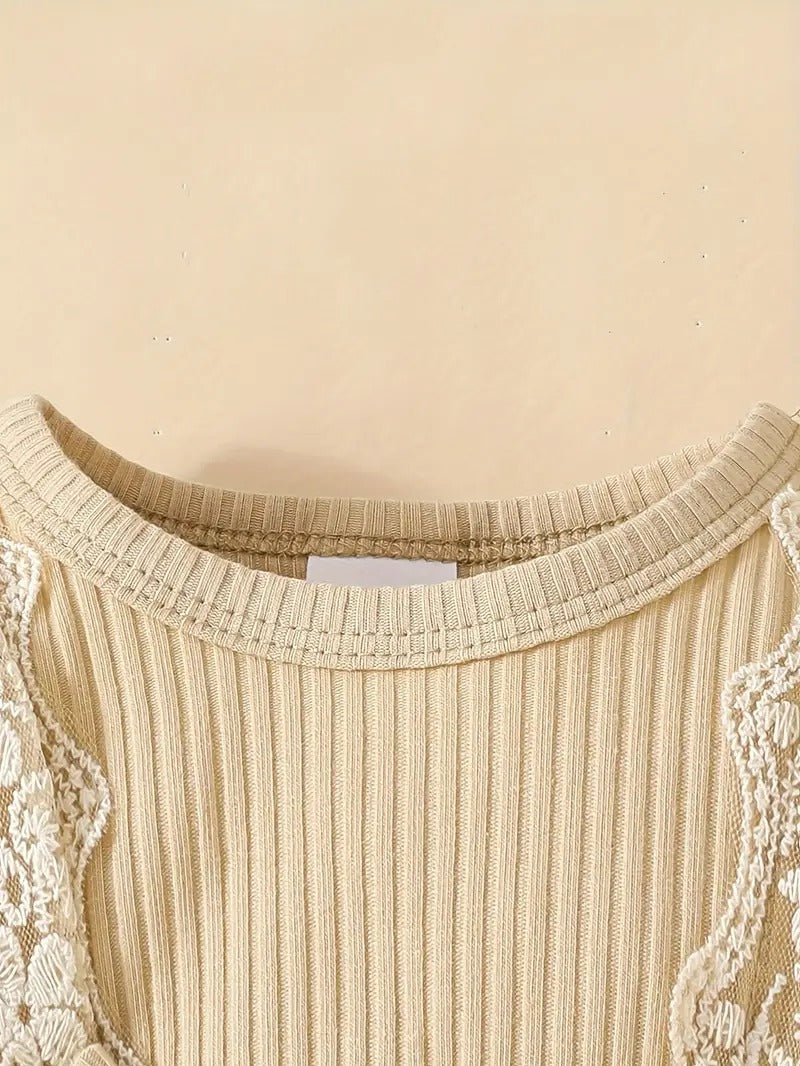 Mangas regulares y cuello redondo, con encaje en pecho