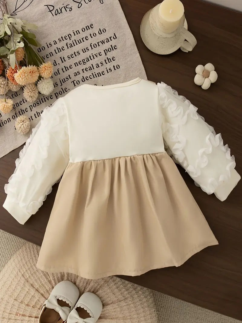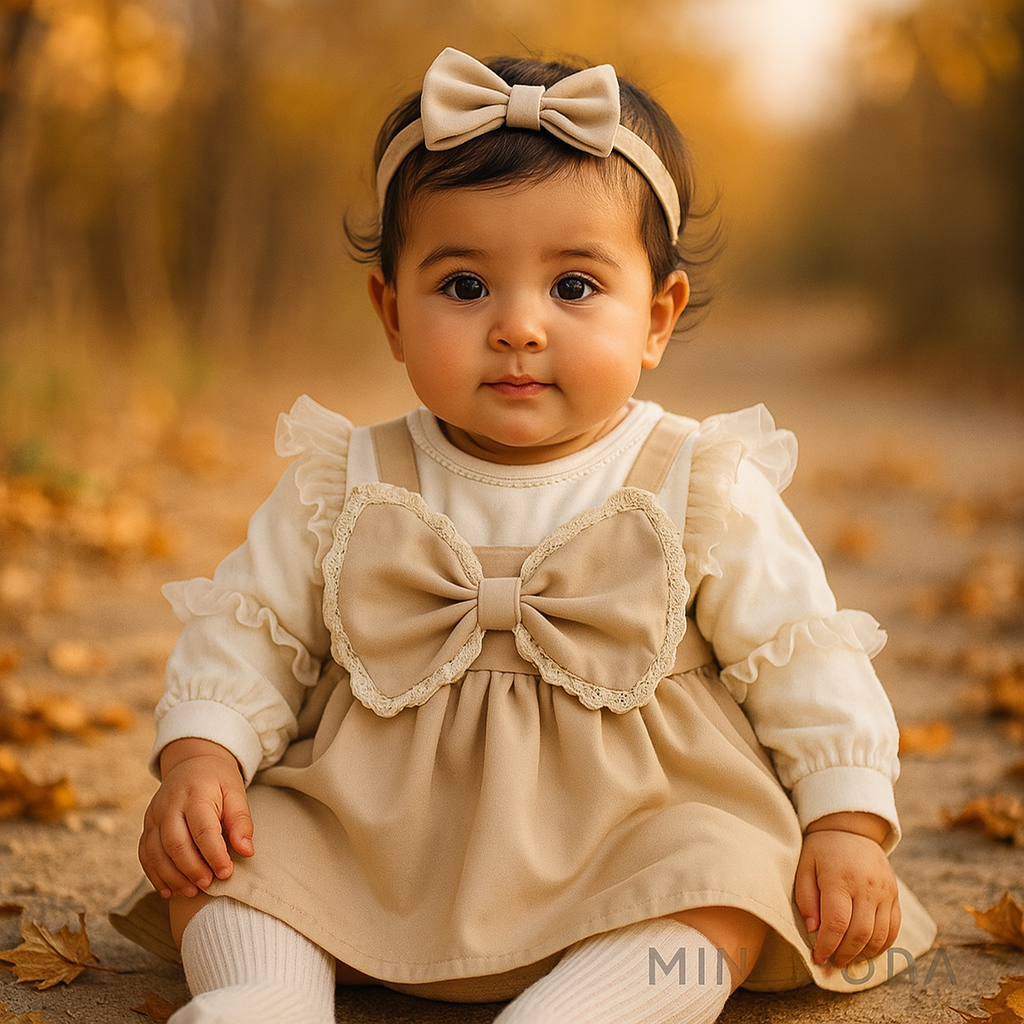 Viste a tu bebé con una elegancia atemporal con este hermoso conjunto de dos piezas. Los tonos neutros y los detalles románticos lo hacen ideal para bautizos, bodas, fotos de familia o cualquier celebración formal.