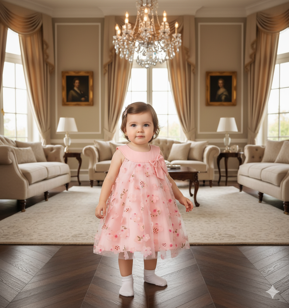 Corte Fresco: Con su diseño sin mangas y su falda acampanada, es perfecto para los meses cálidos, asegurando que tu bebé se mantenga cómoda mientras luce impecable.