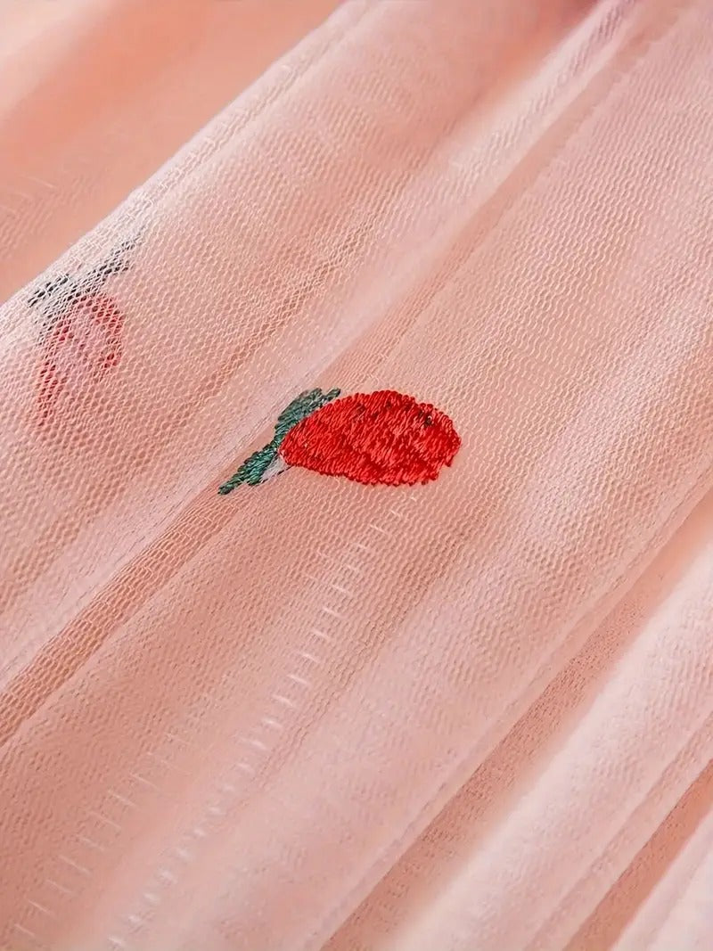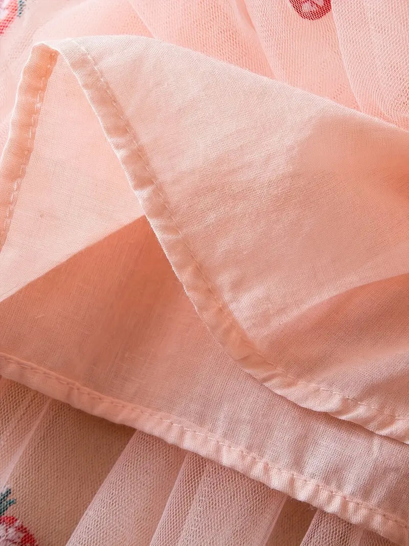Vestido blanco con tul suave y estampado de cerezas en 3D